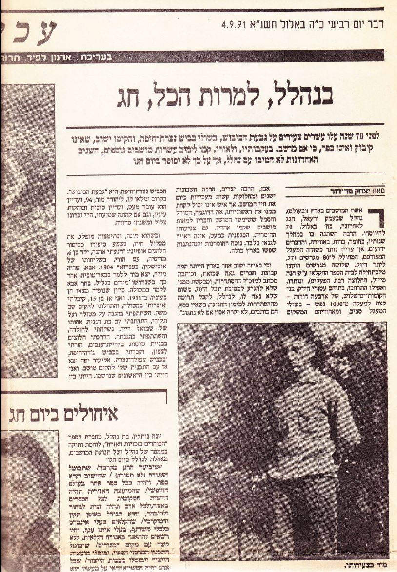 לפני 70 שנה עלו עשרים צעירים על גבעת הכיבוש, בשולי כביש נצרת-חיפה, והקימו ישוב, שאינו קיבוץ ואינו כפר, כי אם מושב. בעקבותיו, ולאורו, קמו לימים עשרות מושבים נוספים. השנים האחרונות לא היטיבו עם נהלל, אך על כך לא יסופר ביום חגו